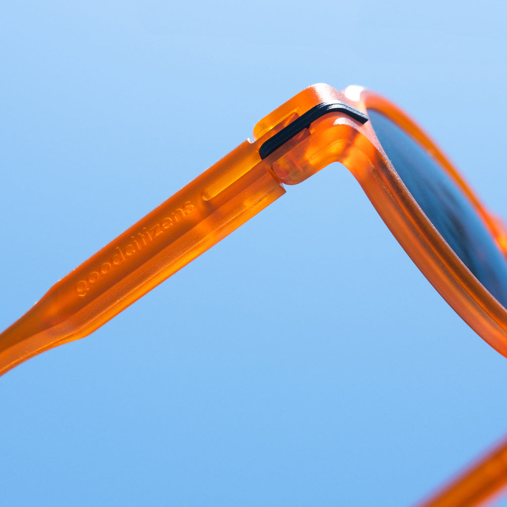 Because we use only 100% recycled plastic in our frames, we use 70-75% less CO2 in our manufacturing than almost all other brands who use virgin materials (brand new plastic/ bioacetate).