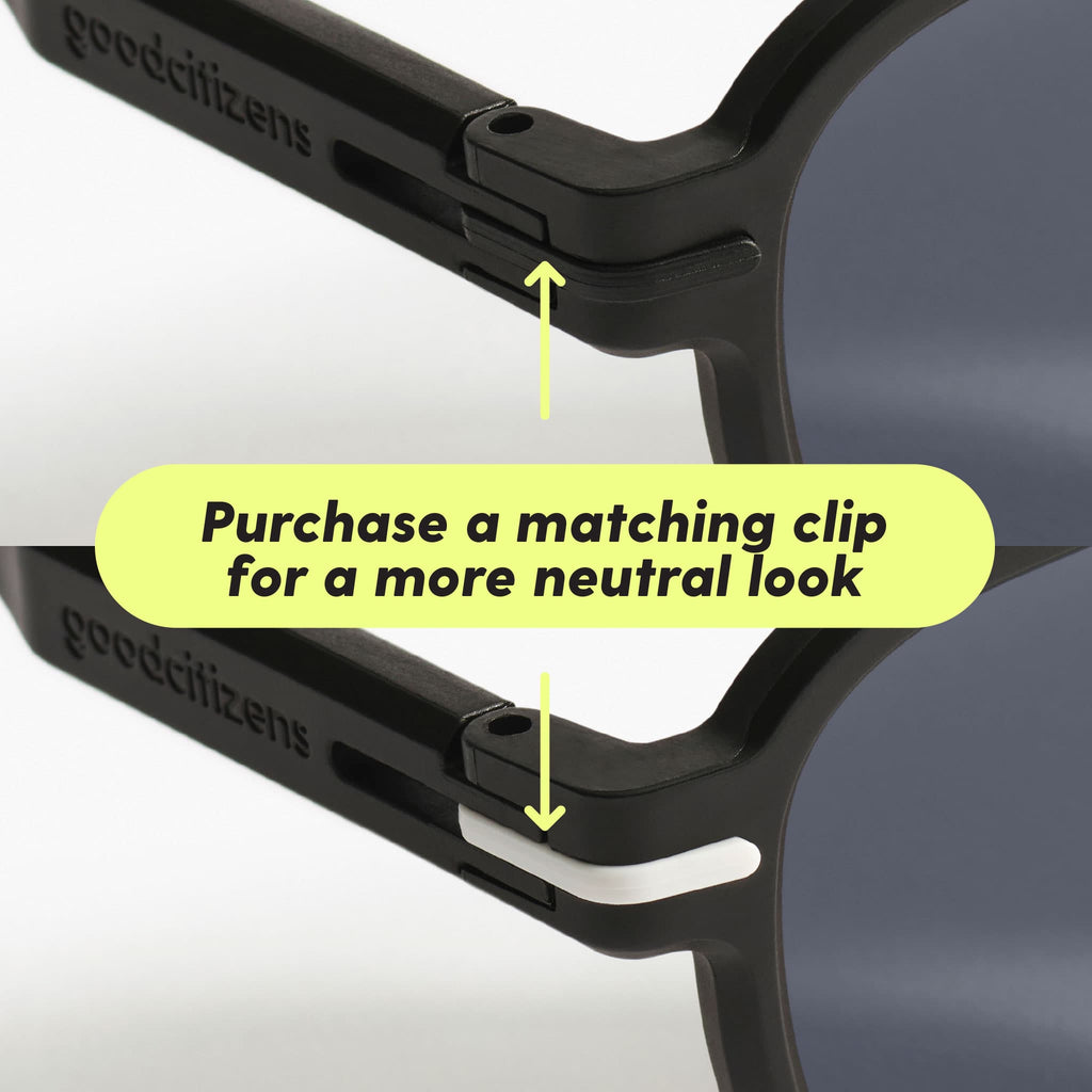 Because we use only 100% recycled plastic in our frames, we use 70-75% less CO2 in our manufacturing than almost all other brands who use virgin materials (brand new plastic/ bioacetate).